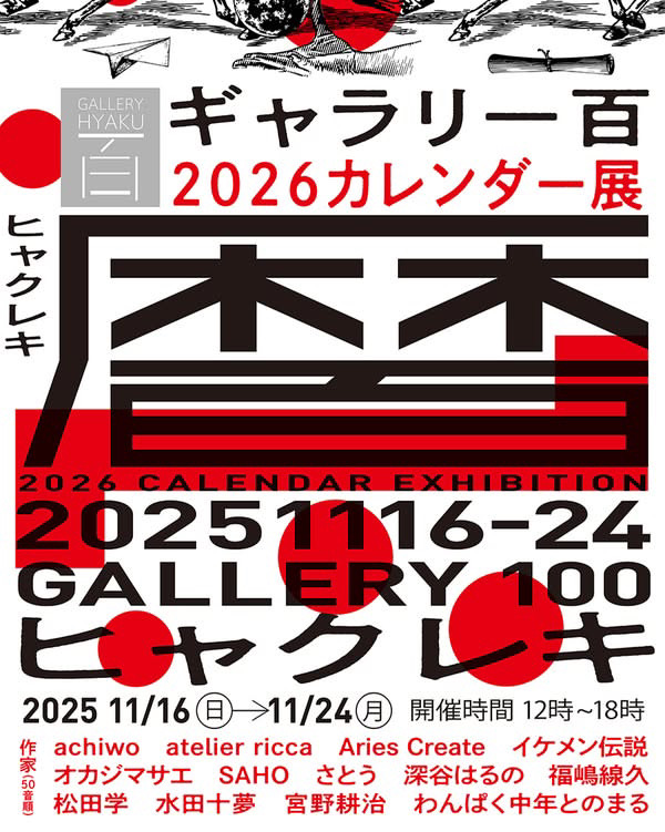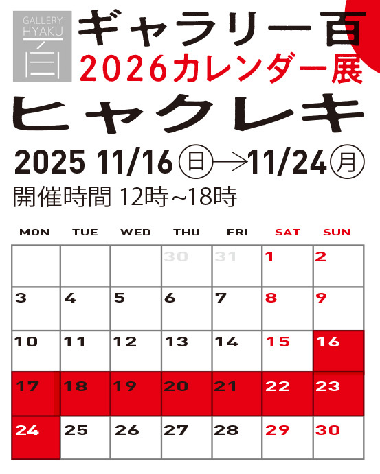 今年も大阪・天神橋のギャラリー百にて開催される「2026カレンダー展」に参加致します。
